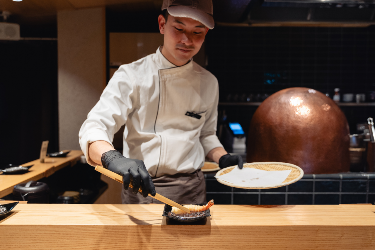 「京都天ぷら 天のめし」は、「高揚する瞬間を、ザ・天ぷらテインメント」をキャッチコピーに、日本の食文化である天ぷらを“体験型エンターテインメント”として世界に発信する天ぷら専門店だ。